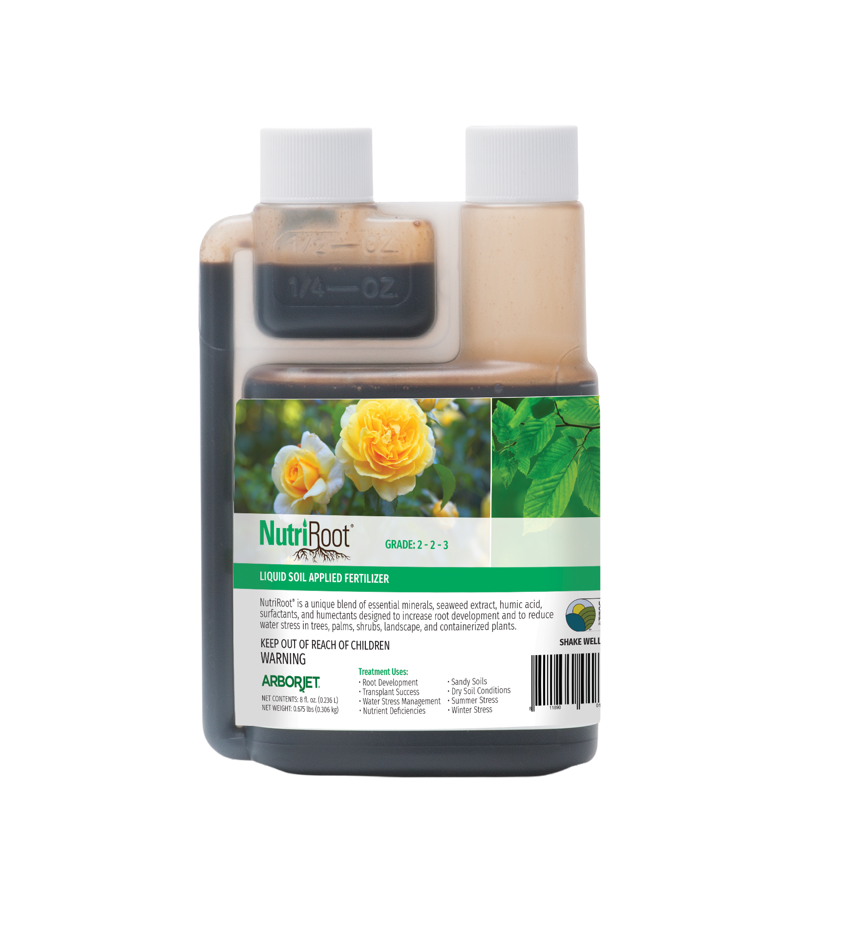 NutriRoot is a unique blend of essential minerals, seaweed extract, humic acid, surfactants, and humectants designed to increase root development and to reduce water stress in trees, shrubs, and lawns. It’s available in three different sizes for your convenience.